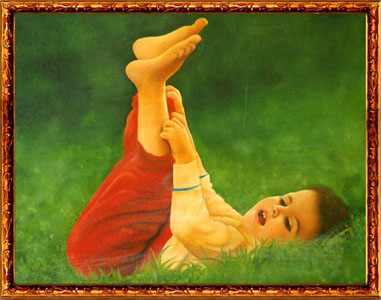 The innocence and charm of childhood is captured in this painting. The softness of the skin of the child, the glow on the face are created in the painting with at most care. A true to real application technique which challenges photography. Boy in the grassOil on canvas 1989 (Size 36" x 48") |